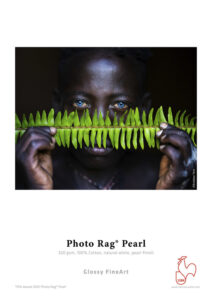 The new Photo Rag® Pearl 320 has a smooth homogen surface with the unique pearl-coating. This natural white paper – consisting of 100% cotton – is free of OBA´s and reminds of a natural white baryt-paper. The paper features a high Dmax and a large colour gamut that enables the reproduction of finest colour and black/white nuances in three-dimensional prints. The precious feel of a real cotton paper offers also a „4th dimension“: sensuality and emotion. It is especially suitable for black and white and colour photographies with warm grey and colour tones and for art reproductions. The exclusive use of rag in this premium paper makes it extremely age resistant and conforms to the highest conservation requirements. For best color intensity and accurate sharpness we recommend as well as the use of pigmented inks and dye inks. All the fine papers and board from the mould made paper mill at Hahnemühle are manufactured in accordance to DIN 6738 / ISO 9706.