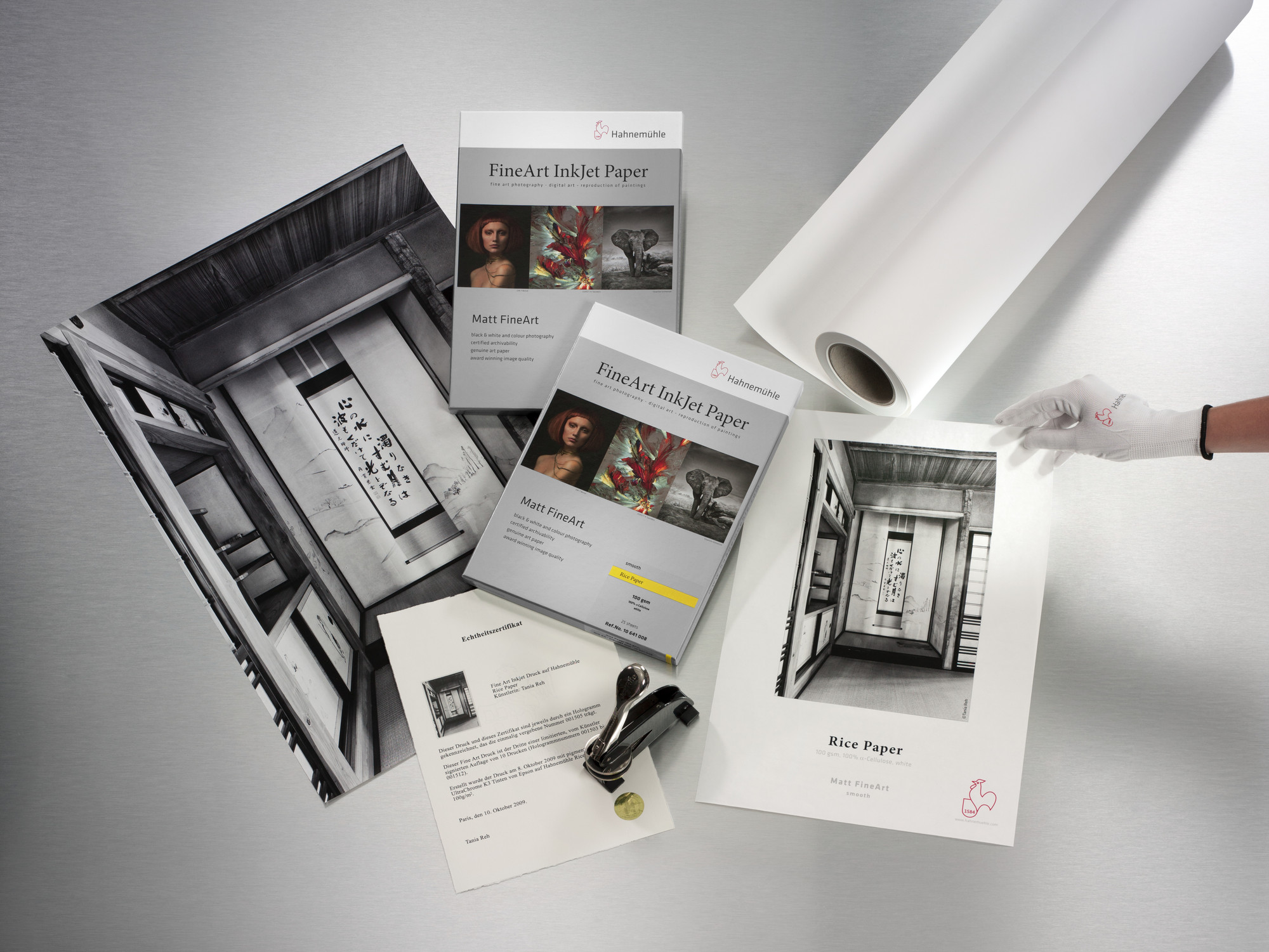 Rice Paper 100 – a white, 100% α-cellulose, laid finished paper – guarantees archival standards. With its premium matt inkjet coating Rice Paper 100 meets the highest industry standards regarding density, color gamut, color graduation, and image sharpness while preserving the special touch and feel of genuine art paper. A very expressive support for reproductions of japanese black and white ink painting (Sumi-e, 墨絵).