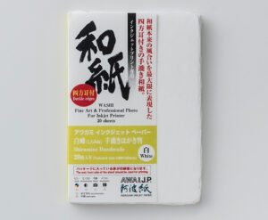 Shiramine postcard is faithfully made one by one with our artisans. It is made as thick as possible to be able to use with any inkjet printers, and the deckled edges will give an art work the extra touch comparing any other printing papers.