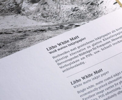 Natural white fourdrinier inkjet paper, made of 90% of bamboo fibres and 10% cotton. Natural white, warm-toned genuine art paper of a fine, soft haptic. Guarantees extremely large colour gamut, high colour density and high-contrast prints.