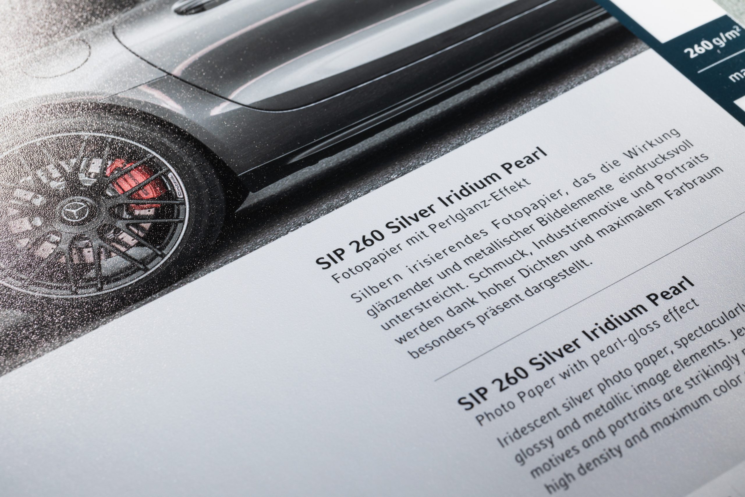 SIP 260 Silver Iridium Pearl ist ein neu entwickeltes Fotopapier für den digitalen Fotodruck mit einer speziellen irisierenden Lustre-Beschichtung. Das Papier mit seiner metallisierenden Pearl-Oberfläche eignet sich sowohl für Fotos bei denen der Metallcharakter unterstrichen werden soll, als auch für die Schwarzweiß-Portraitfotografie bei der spezielle irisierende Effekte erzielt werden sollen. In der Haptik eines klassischen Fotopapieres mit einer hochwertigen Druckqualität bis zu 5760dpi werden Abbildungen in nahezu fotorealistischer Weise farbtreu, lebendig und detailreich wiedergegeben. SIP 260 Silver Iridium Pearl ist ein High-Quality-Fotopapier, für den universellen Einsatz auf allen gängigen LFP-Inkjetdruckern sowohl mit Farbstoff- als auch Pigment-Tinten. Die nanoporöse Beschichtung dieses Fotopapiers liefert eine ausgezeichnete Farbwiedergabe bei großer Detailtreue, scharfen Konturen, einem extrem großen Farbumfang und ausgezeichneter Planlage.
